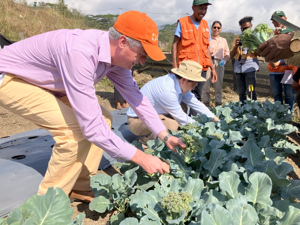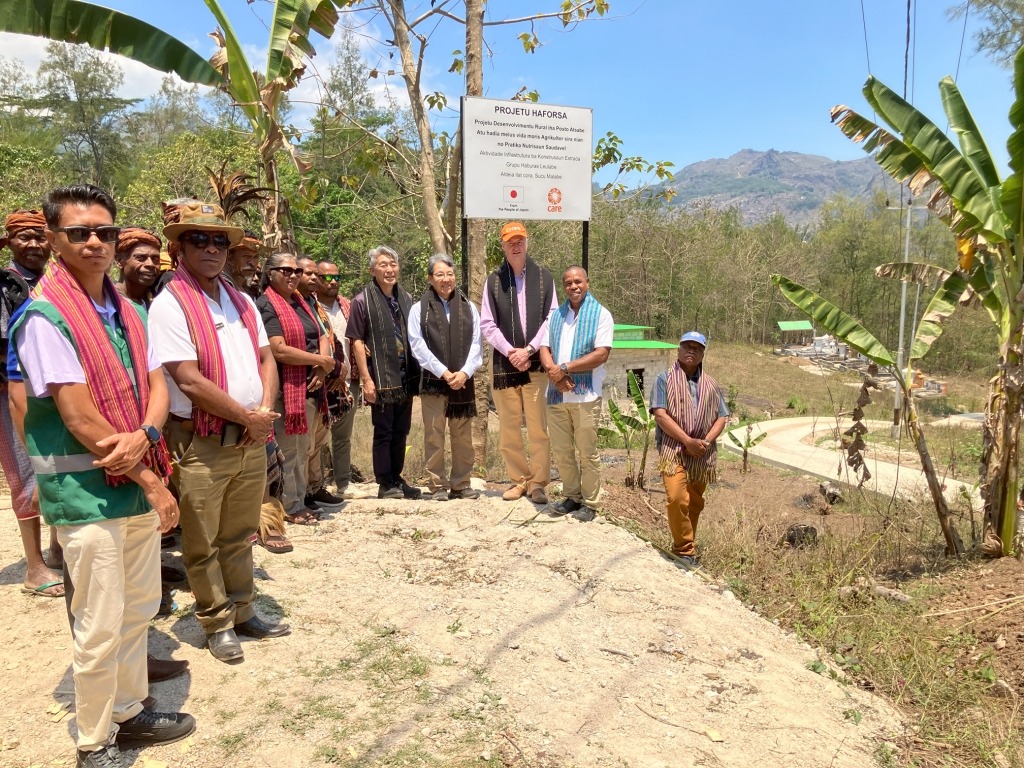 今般、完成したコミュニティ道路のお披露目、女性のVSLAメンバーによる収入向上活動としてのお菓子づくりの視察、研修用農地の見学などを行い、事業の成果を木村駐東ティモール日本国大使、上田INPEX現地代表、オリヴェイラ・アッサベ郡長をはじめとする東ティモール政府関係者にご紹介しました。