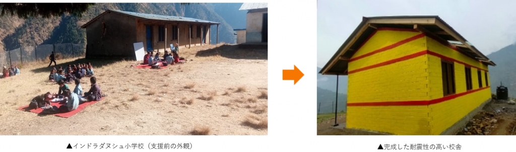 この事業は、2025年2月から同年10月まで、地震に弱いネパールのなかでも、災害脆弱性が高いカルナリ州ジャージャルコート郡のインドラダヌシュ小学校を対象にしたものです。2023年11月の地震で被災した同校は、当財団の支援が入るまで、どの団体からも地震からの再建に向けた支援を受けることができず、学校設備の状態が悪いため、生徒たちは野外で授業を受けていました。さらに、未就学クラスと1年生の子どもたちは一緒に授業を受け、同様に、2年生と3年生のクラスも一緒に教えられていました。生徒たちはグラウンドで授業を受け、冬が近づくにつれ、寒さのなかで勉強を続けるのは難しくなり、このことは子どもたちの健康問題にもつながっていました。