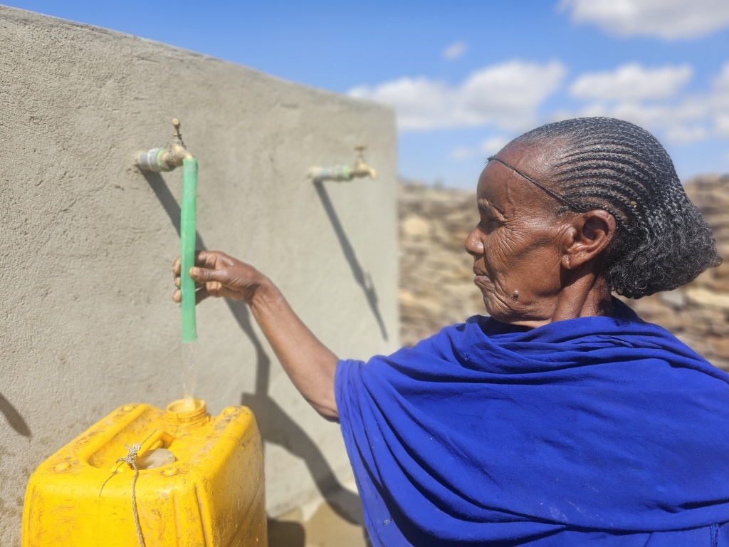 その結果、約2,000人が安定して水を利用できるようになり、とくに女性や子どもたちの水汲みにかかる負担が大きく軽減され、高齢の女性が遠くまで水を運ぶ必要もなくなりました。生活や生計の安定にもつながっています。