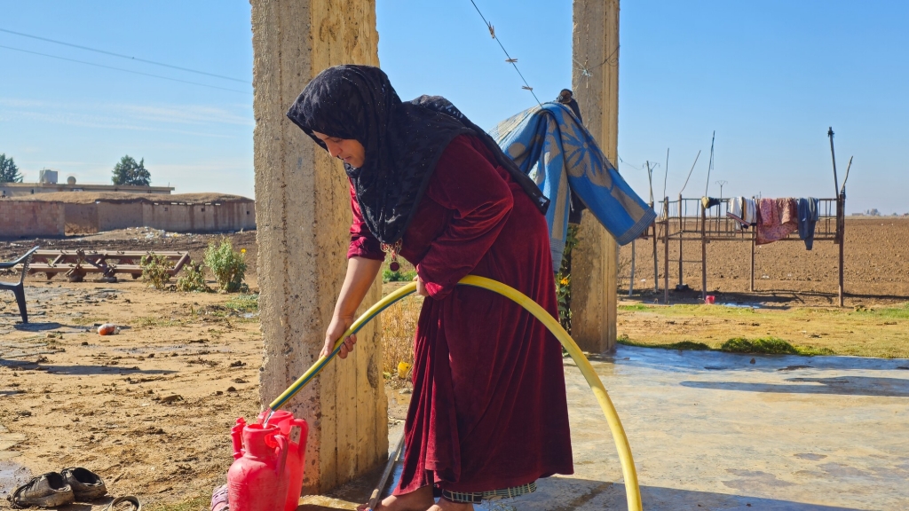 例えば、シリア北東部の農村では、干ばつによる水不足は農業にも深刻な影響を及ぼし、収穫量の減少や収入の不安定化を招き、家族の食事さえ十分に確保できない状況が続いていました。こうした中、CAREは地域の給水施設を修復し、太陽光パネルを設置しました。人々は以前よりも多くの水を、より低いコストで利用できるようになり、節約できたお金を食料の購入に充てることができるようになりました。家事や衛生管理も改善され、水が使える日には安心して洗濯や掃除ができるなど、日常生活にも大きな変化が生まれています。水への安定したアクセスは、人々の暮らしに確かな安心と希望をもたらしています。