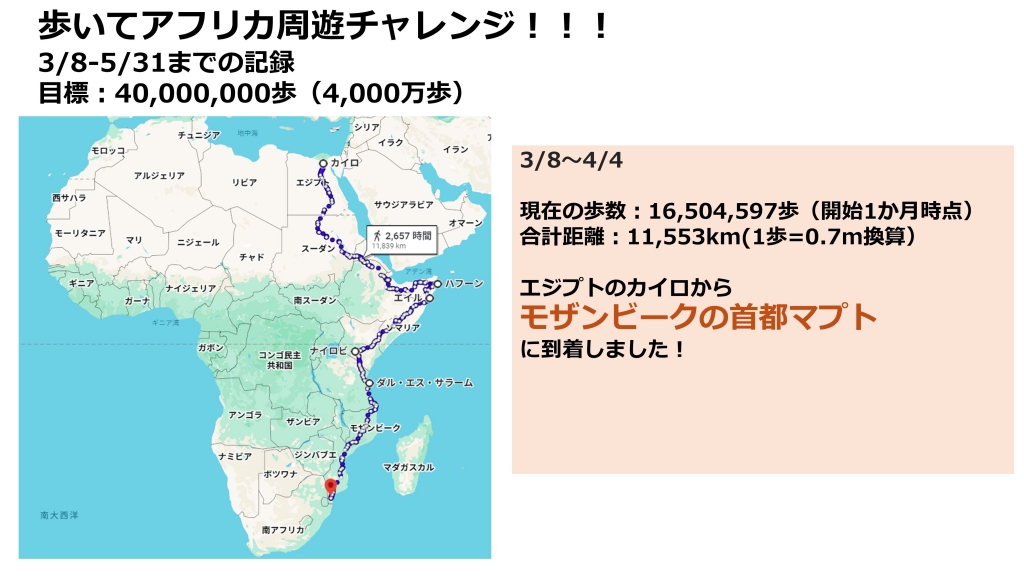 また約2か月半の期間を通じて継続的に楽しく参加いただくため、昨年度実施した「本社から世界旅行チャレンジ」を参考にして、「アフリカ大陸周遊の旅」を企画しました。昨年度は未踏であったアフリカ大陸をテーマとし、世界の広さを体感しながら参加できる内容としています。